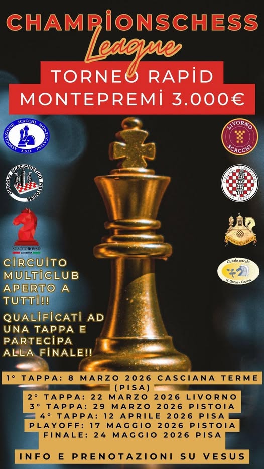 ChampionChess League un torneo Rapid a fasce con 3000 euro di montepremi (torneo A: Elo > 1800, torneo B: Elo 1600 - 1800, torneo C: Elo < 1600).